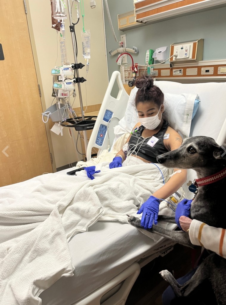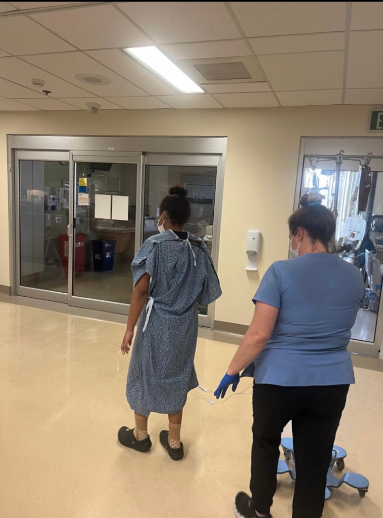 She has been tasked with walking more throughout the day. Although it is a taxing feat for her right now, she’s up to the challenge and is doing multiple laps that will hopefully get her lungs and muscles in a position to revert to normal life!